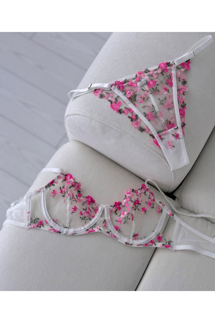 Set de dos piezas con Bordado floral y encaje con trasparencia